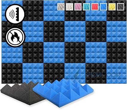Arrowzoom 24 Paneles acustico absorción sonido Pirámide 25x25x5cm Espuma acústica aislamiento acustico estudio de grabación Casas Estudios Azulejos Incombustibles Insonorizados Negro Azul